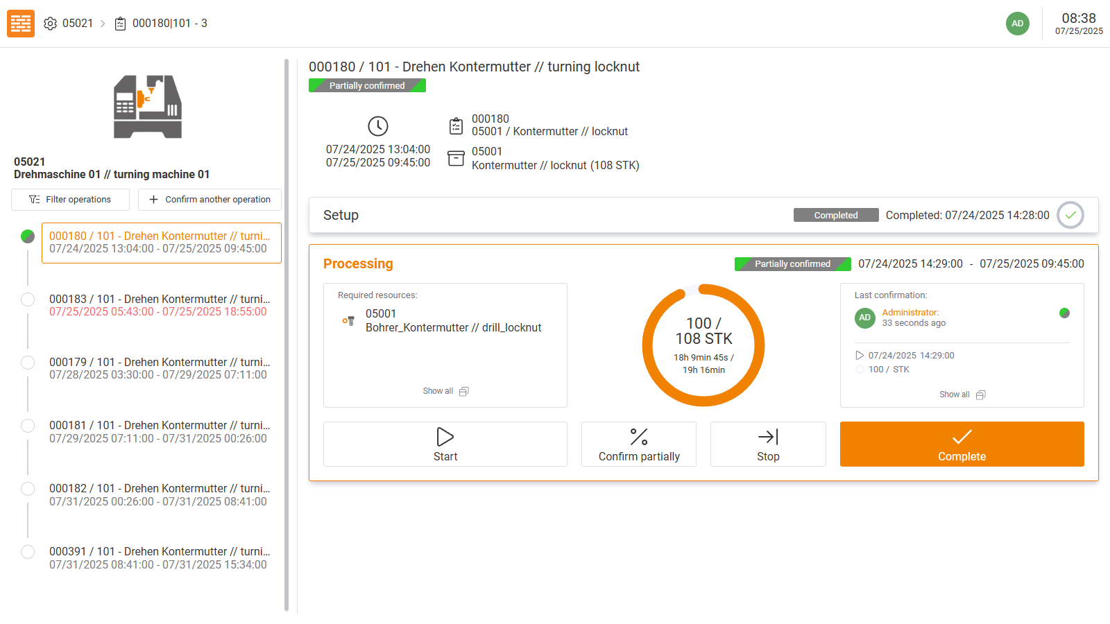 The time required to implement APS software primarily depends on the number of machines and workstations, as well as the completeness of the necessary data. Based on our experience, customers can efficiently use digital production planning within 10–25 working days.
